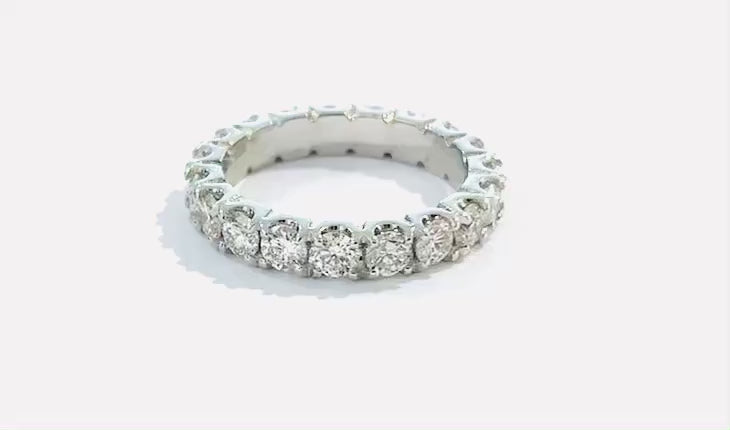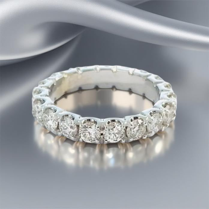 18 kt valko-tai keltakultainen timanttisormus, jossa timantit kokonaan sormuksen ympäri.