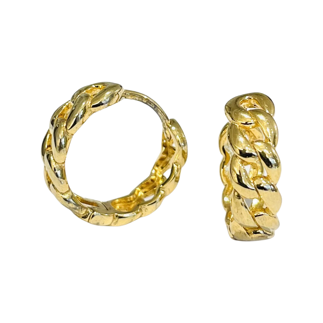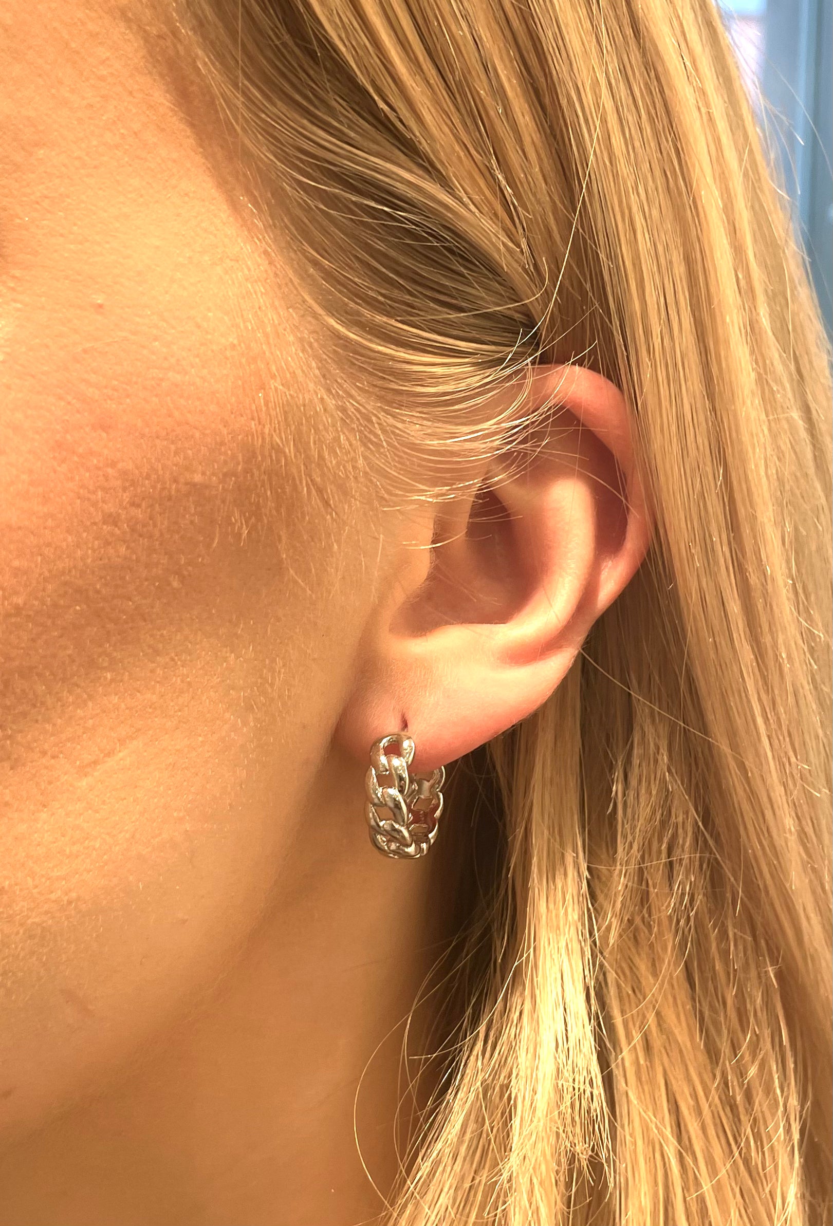 Ketjurengas korvakorut, kullattua hopeaa, halkaisija 17,7 mm, leveys 5,7 mm, paino 2,45 g. Nikkelitön