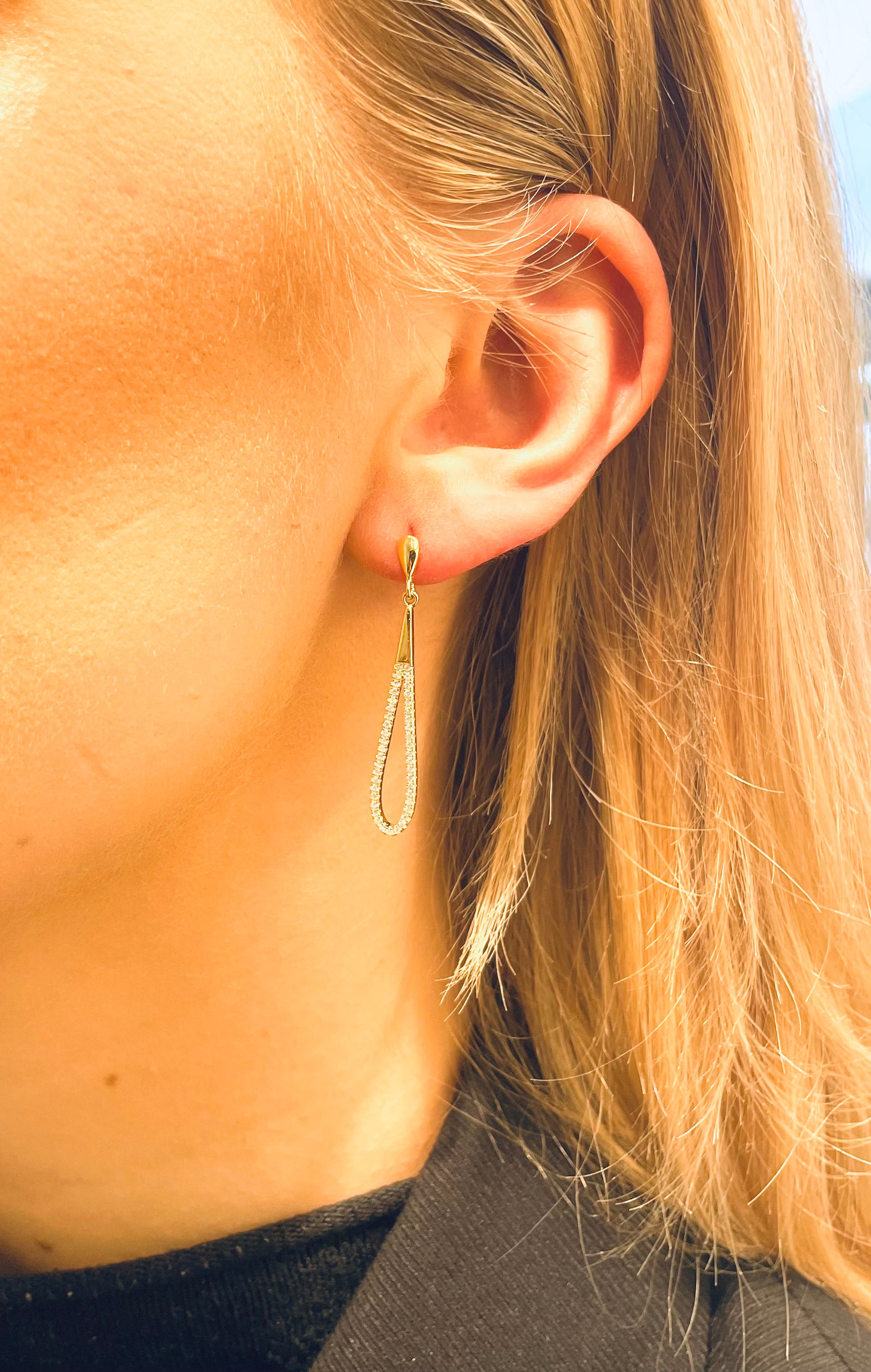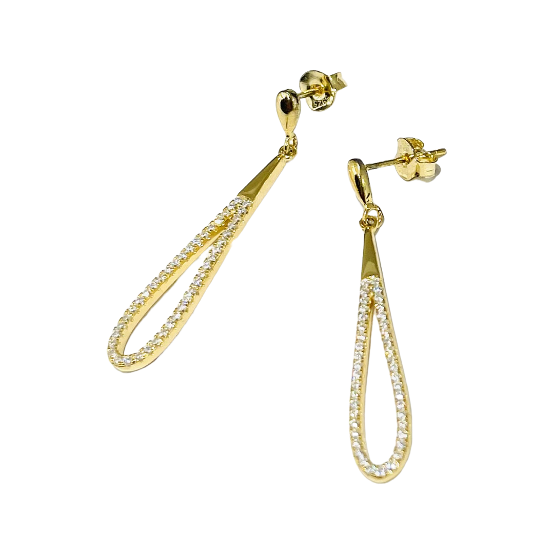 Zirkonein koristellut ”neulansilmän” näköiset 4 cm:n pituiset kauniit roikkuvat korvakorut ovat kevyet mutta näyttävät ja materiaaliltaan kullattua hopeaa. Paino 1,4 g. Nikkelitön.